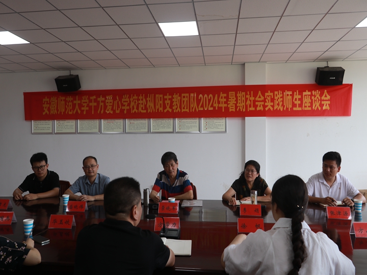 各位领导老师来枞调研一行表示欢迎,对支教队员们的辛勤付出予以高度评价,并介绍了枞阳县的悠久历史和发展情况。实践队员结合自身专业特色和前期支教经历,分享实践体会收获。团队队长陈超从团队建立、成员概况、课程安排等介绍了千方爱心学校赴枞阳爱心支教团队的基本情况。小老师们纷纷感慨到“原来想当好一名老师是这般的不易”“我们在实践中收获了教育学生带来的使命感、收获了自己动手带来的成就感,收获了感动家长带来的责任感”……。景晓军代表学校感谢枞阳县党委县政府和团枞阳县委对学校暑期社会实践的大力支持,勉励支教队员们不仅要成为学生们的老师,更是成为学生成长路上的“精神领袖”,努力引导中学生们树立远大理想,走出乡村、走向更广阔的天地;希望支教团队每年都可以组建支教团队来枞阳,持续为县区的孩子们带来更加丰富多彩的学习体验,教会学生运用互联网等现代科技改善现有的学习条件;鼓励支教队员们要以实际行动践行包子漫画