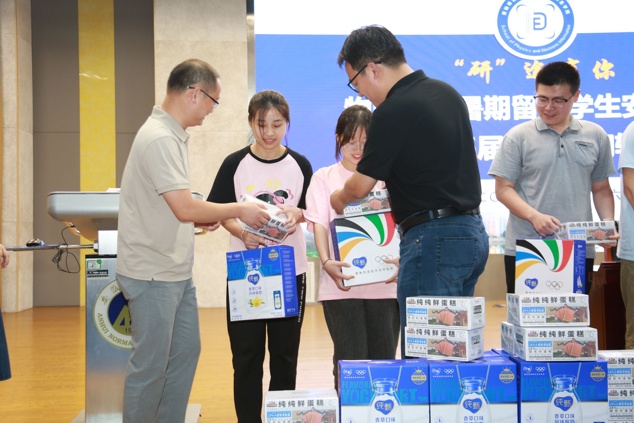 吕建平在总结讲话中充分肯定了考研学子们在酷暑中迎难而上、坚持学习、挑战自我、突破进取的精神,向他们表达了鼓励和期望。他叮嘱同学们,充分利用好学院提供的暑期条件,结合自身情况合理安排暑期学习计划,互帮互助,调整心理和身体状态,按部就班,在劳逸结合中持续发力,以恒心和信心坚持到底,一战成硕。会后,全体领导老师为学生代表发放考研慰问品并合影留念。