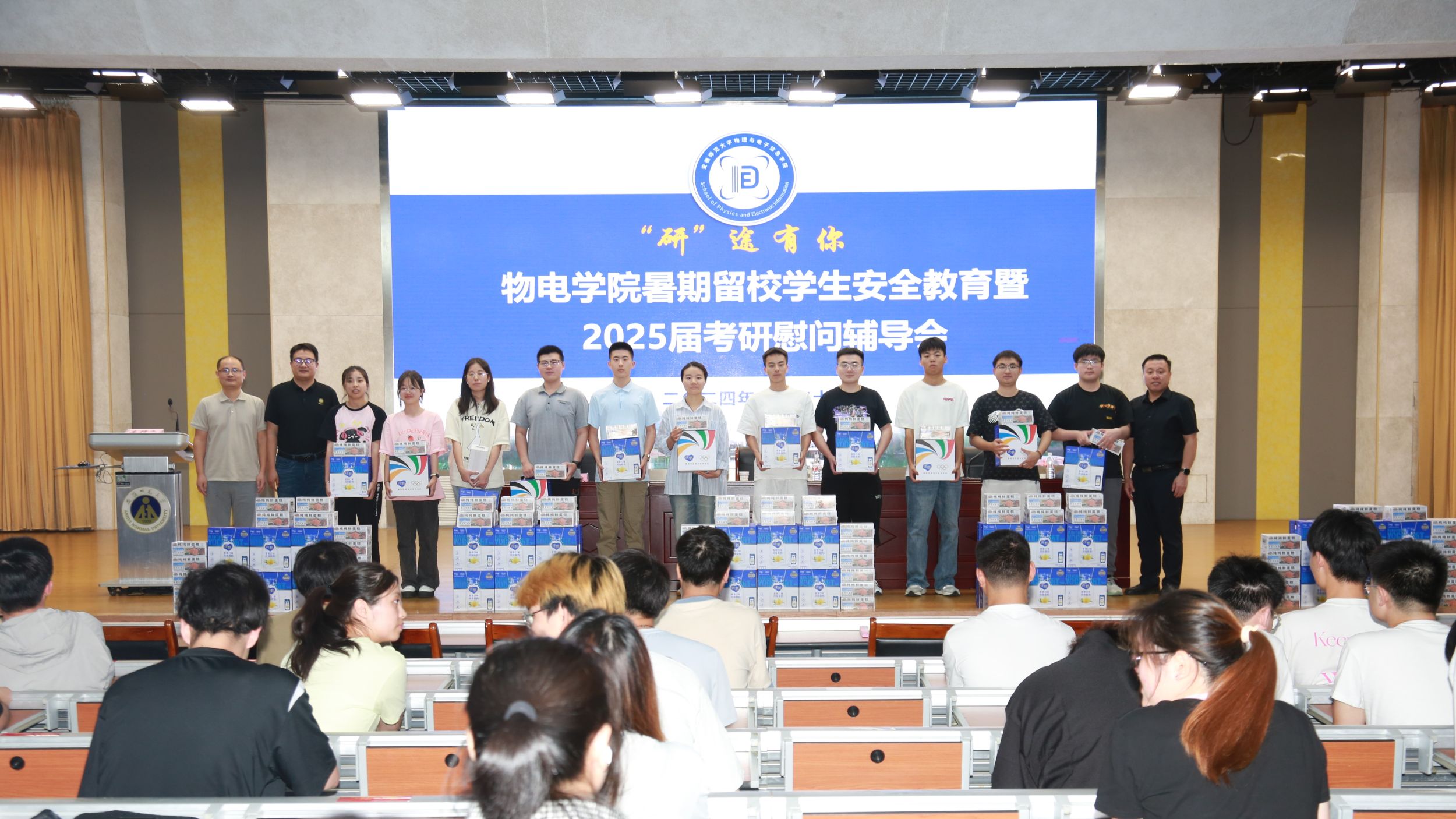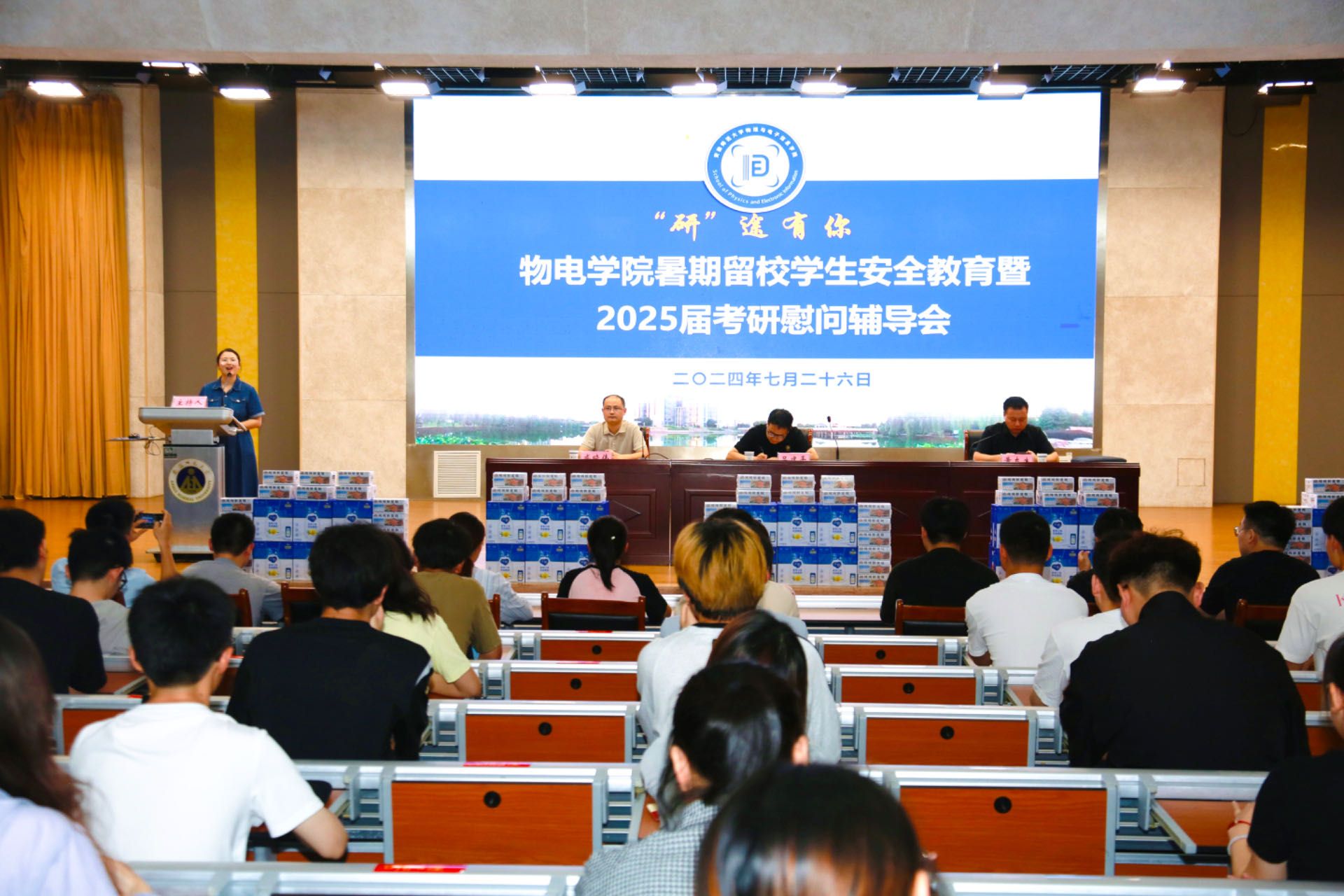 7月26日下午,学院在理化报告厅开展暑期留校学生安全教育暨2025届“研”途有你考研慰问辅导会。学院院长吕建平、党委副书记黄友生、副院长盛晓伟受邀参加本次会议。会议由辅导员李慧芳主持。辅导会上,黄友生结合2024年考研以及招生情况,鼓励考研学子们做一件对的事情,处理好“实力与目标”两个问题,强化“系统、恒心和安全”三种意识,选择适合自己的目标院校,为了美好未来再拼一次。盛晓伟作考研专题辅导。他以自己自身考研与学术学习成长经历为例讲解分析考研择校特点、研究生招生情况和考研复习策略,建议同学们全面了解考研政策、开阔择校眼界、坚定考研信念、明确自身定位、精准进行备考。