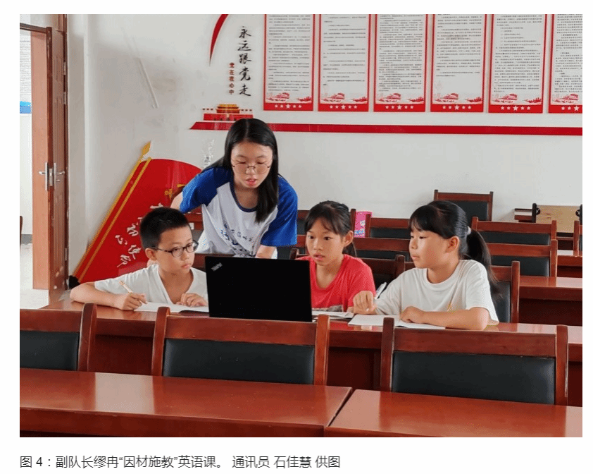 支教成果初绽放,千方爱心传希望在支教小队的奋楫笃行下,在桃铺村开展的支教活动取得了显著成效,得到了当地家长和学生的一致称赞。支教地点也从原来的小会议室迁至三楼的大会议室。支教队员们秉持着因材施教的理念,充分满足学生的个性需求。第一、三节课上,丰富多样的课程设置让孩子们尽情遨游在知识的海洋。单独开设的英语课,为孩子们打开了了解世界的新窗口;一对一的幼儿园小朋友辅导,给予了年幼的孩子们最贴心的关怀和指导。