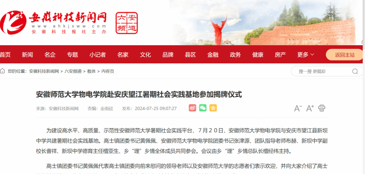 原报道阅读链接:【安徽科技新闻网】://www.ahkjxww.com/liuanjiaoti/37722.html