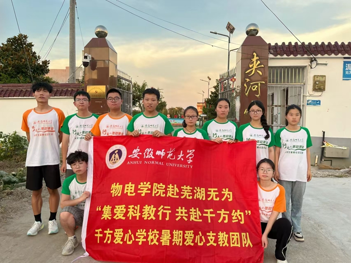 据悉,“千方爱心学校”今年首次赴无为市开展爱心支教活动并举行大学生社会实践基地揭牌仪式。团队先后分三批共计55名志愿者赴夹河小学开展支教活动,共计服务留守儿童达160余人。实践期间,无为市委常委、组织部长陈兆强,团无为市委书记姚文敏,泥汊镇党委书记黎平安、党委副书记俞韵文,日新村党总支书记柯成,包子漫画