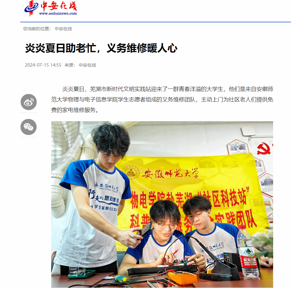 学生志愿者组成的义务维修团队,主动上门为社区老人们提供免费的家电维修服务。