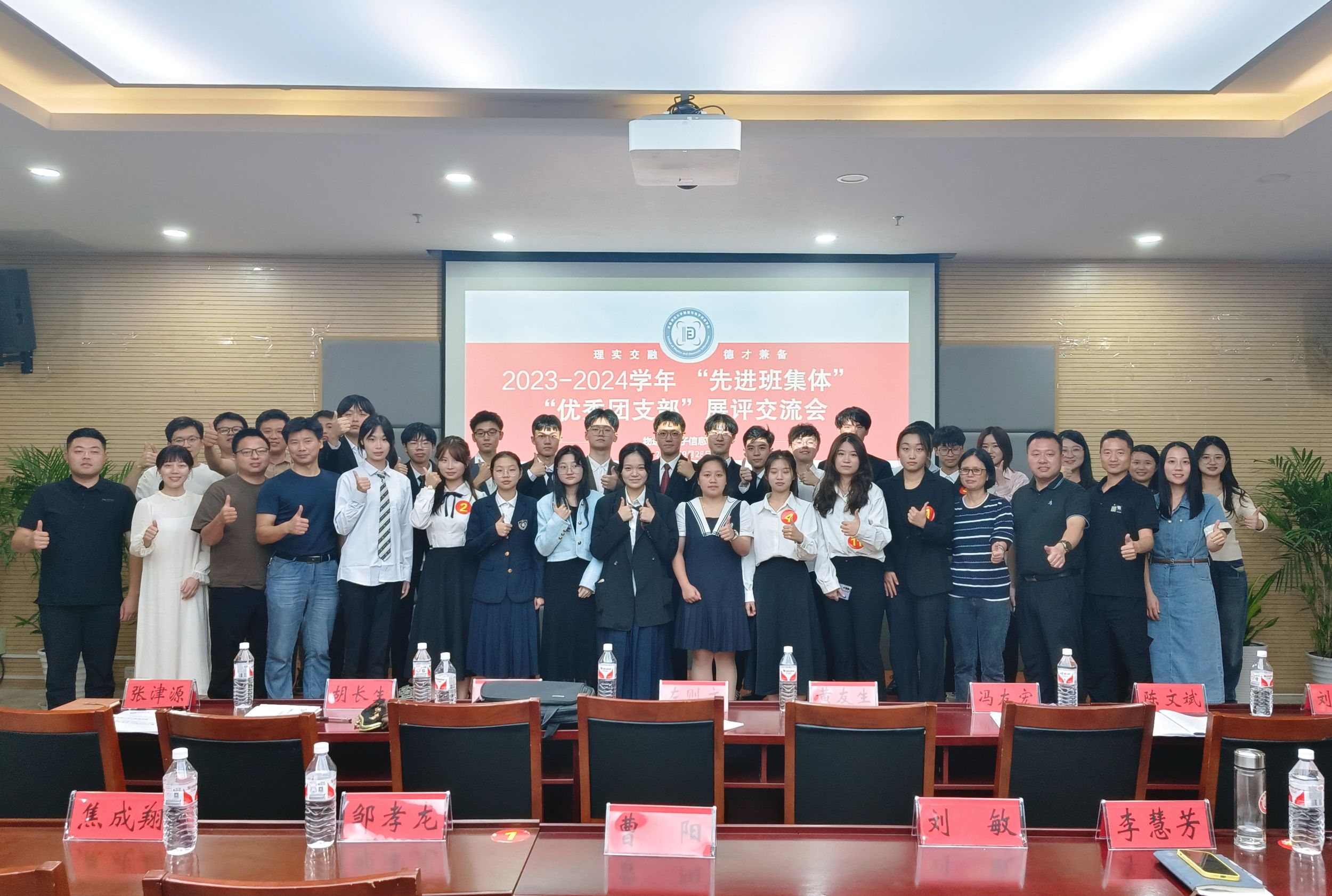 开展2023-2024学年“先进班集体”“优秀团支部”展评交流会。学院党委副书记黄友生,学院教师代表左则文、汤萍萍、杨凌云、胡长生、陈文斌以及学院全体本科生辅导员担任评委,2023级、2024级各专业学生代表到场观摩。