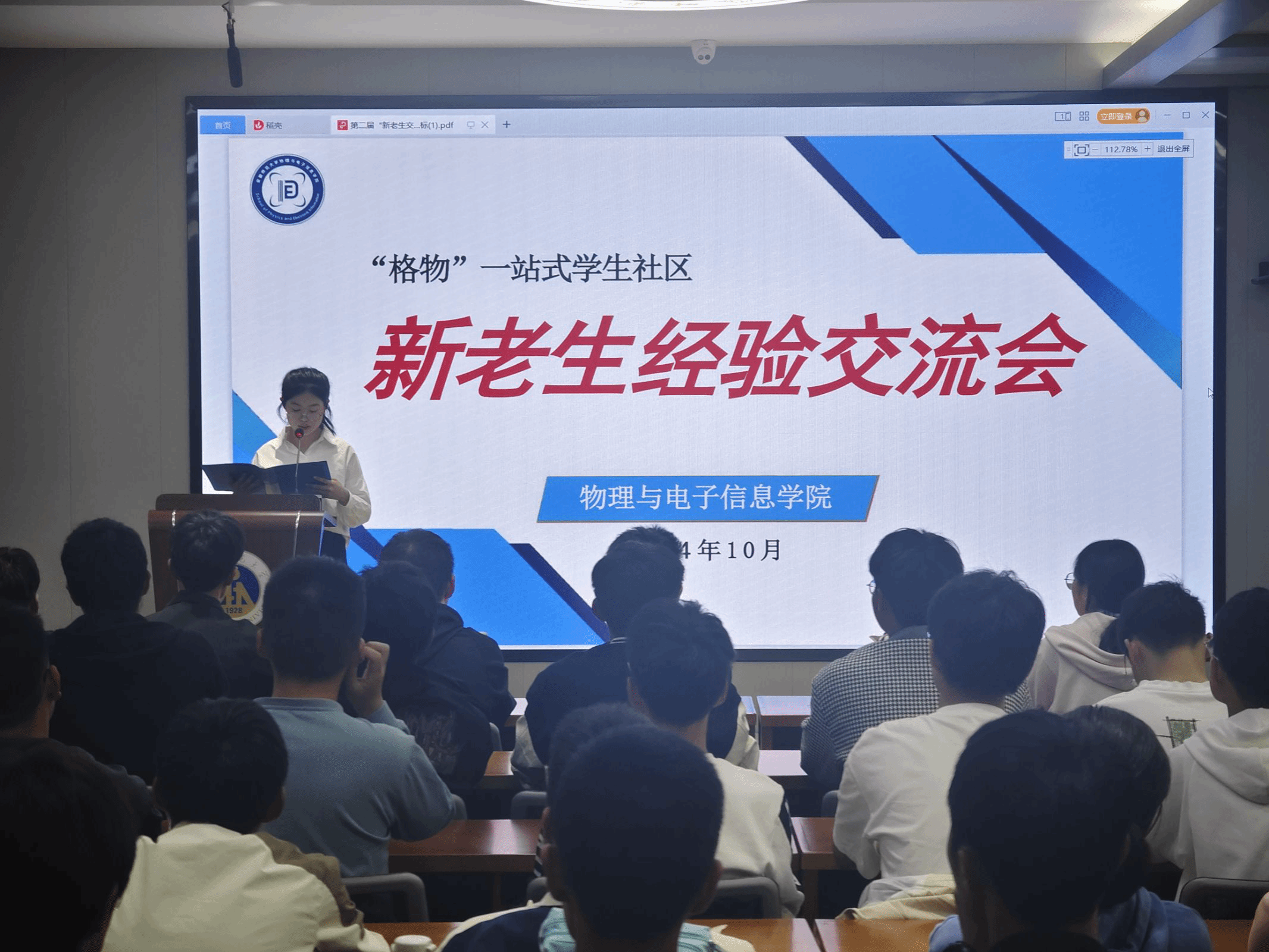在“格物”社区和“求实”社区,来自物理学、电子信息工程、通信工程、光电信息科学与工程和自动化五个专业的优秀学生代表结合个人大学经历和收获,围绕专业学习、科研竞赛、第二课堂、志愿服务、学生工作、升学就业等方面,多角度、全方位为新生们提供了宝贵的经验和建议,为2024级新生奉上了一场授业解惑的精神“盛宴”。