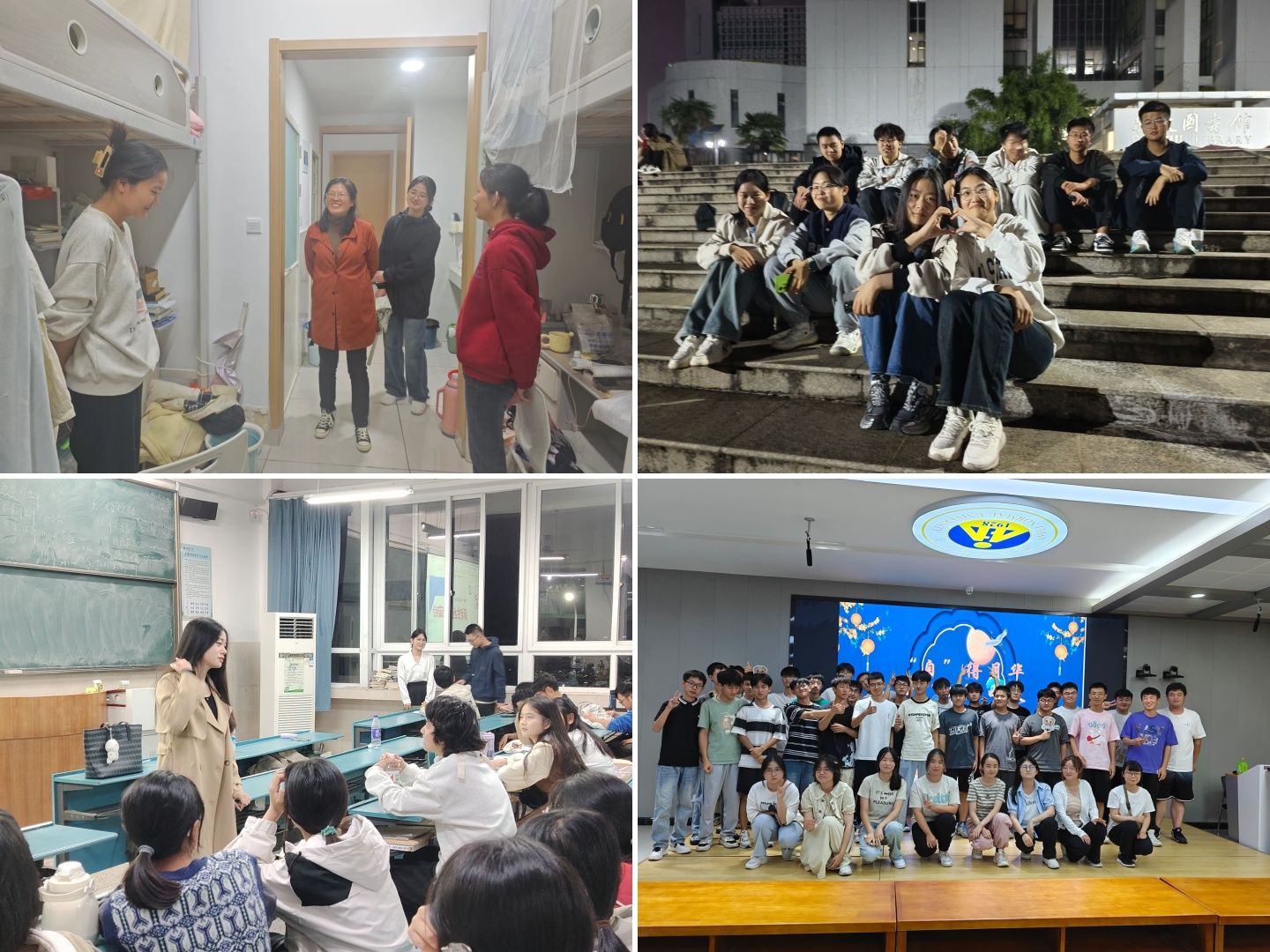 携手交流,织密人际联结。坚实可靠的人际关系网,是承托一个人心灵成长的重要后盾,也是一个人心境发展的重要土壤。心理健康月期间,学院领导和辅导员深入宿舍、课堂,走进学生生活,与学生开展谈心谈话,了解学生所需所困,增进师生情谊;各班级积极开展班级联谊、湖边夜谈等交流活动,促进同学之间的互动,增进班级凝聚力。