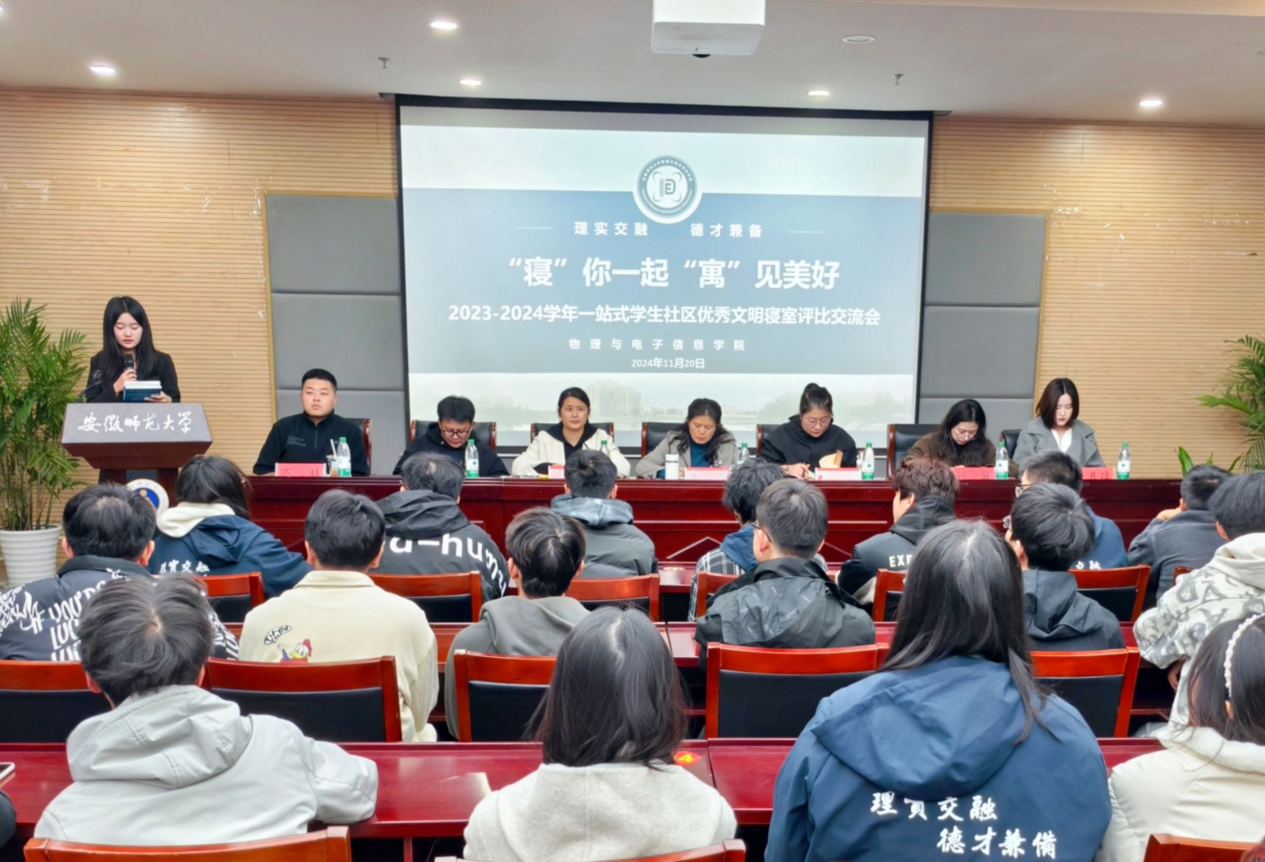 在物电楼304举办“一站式”学生社区优秀文明寝室评比交流会暨“六个文明”学风督导团工作布置会。学院党委书记李娟,全体专兼职辅导员,各年级班级主要学生骨干,寝室长以及“一站式”学生社区学生楼、层长参加会议。