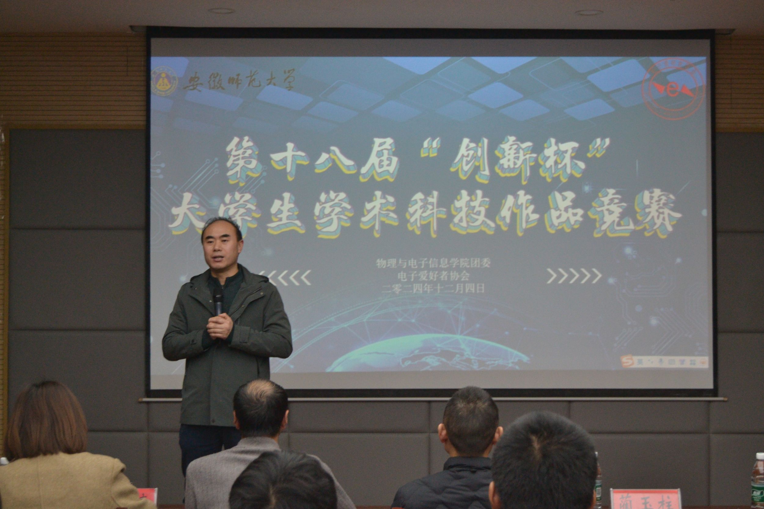 电子爱好者协会承办的第十八届“创新杯”大学生学术科技作品竞赛成功举办。工科实训中心主任、电子爱好者协会指导老师蔺玉柱,电子信息工程专业副主任汤萍萍,自动化专业副主任陈文斌、光电信息科学与工程专业老师吴勇受邀指导,参赛选手、观摩学生等80余人参加活动。
