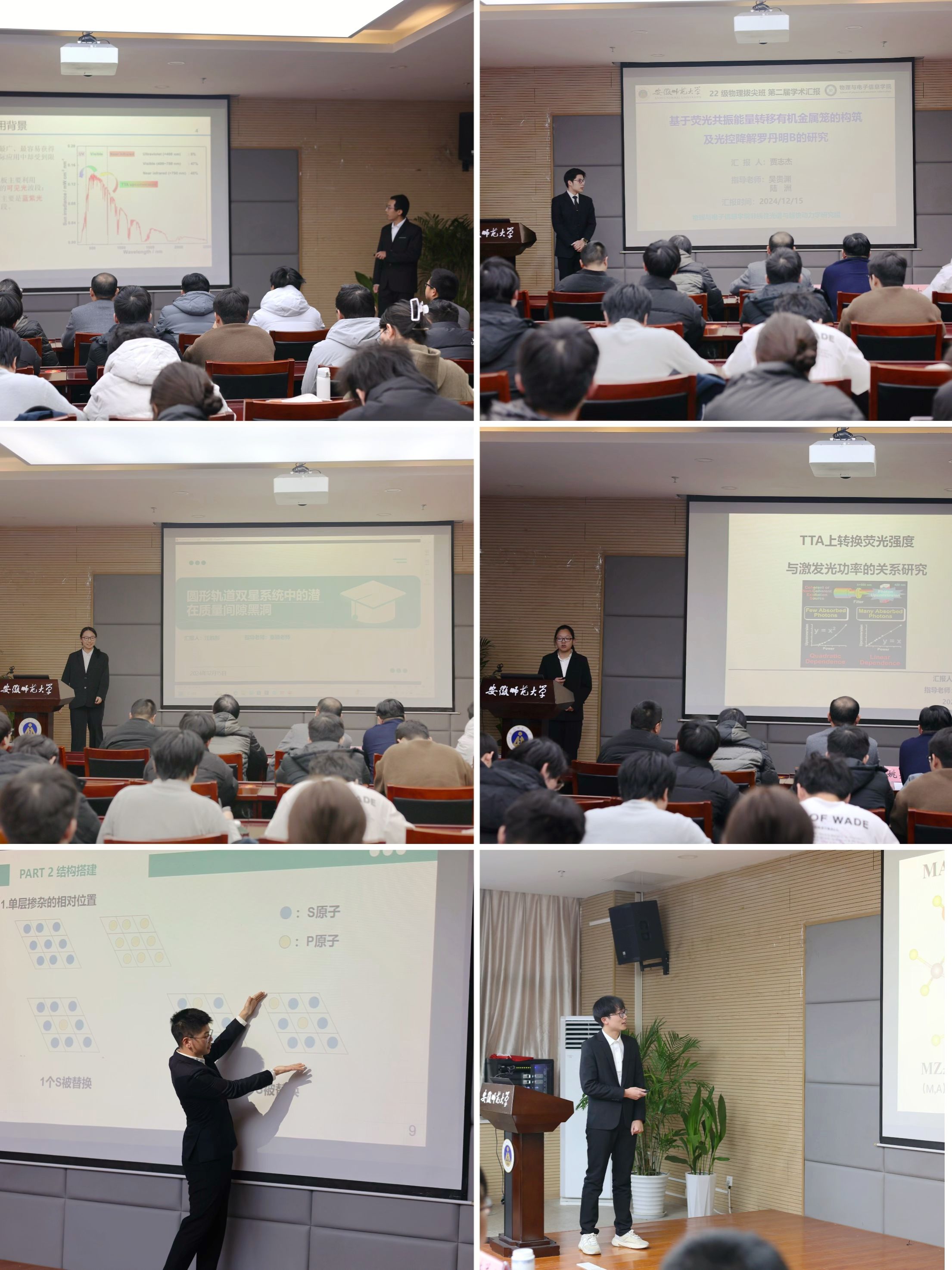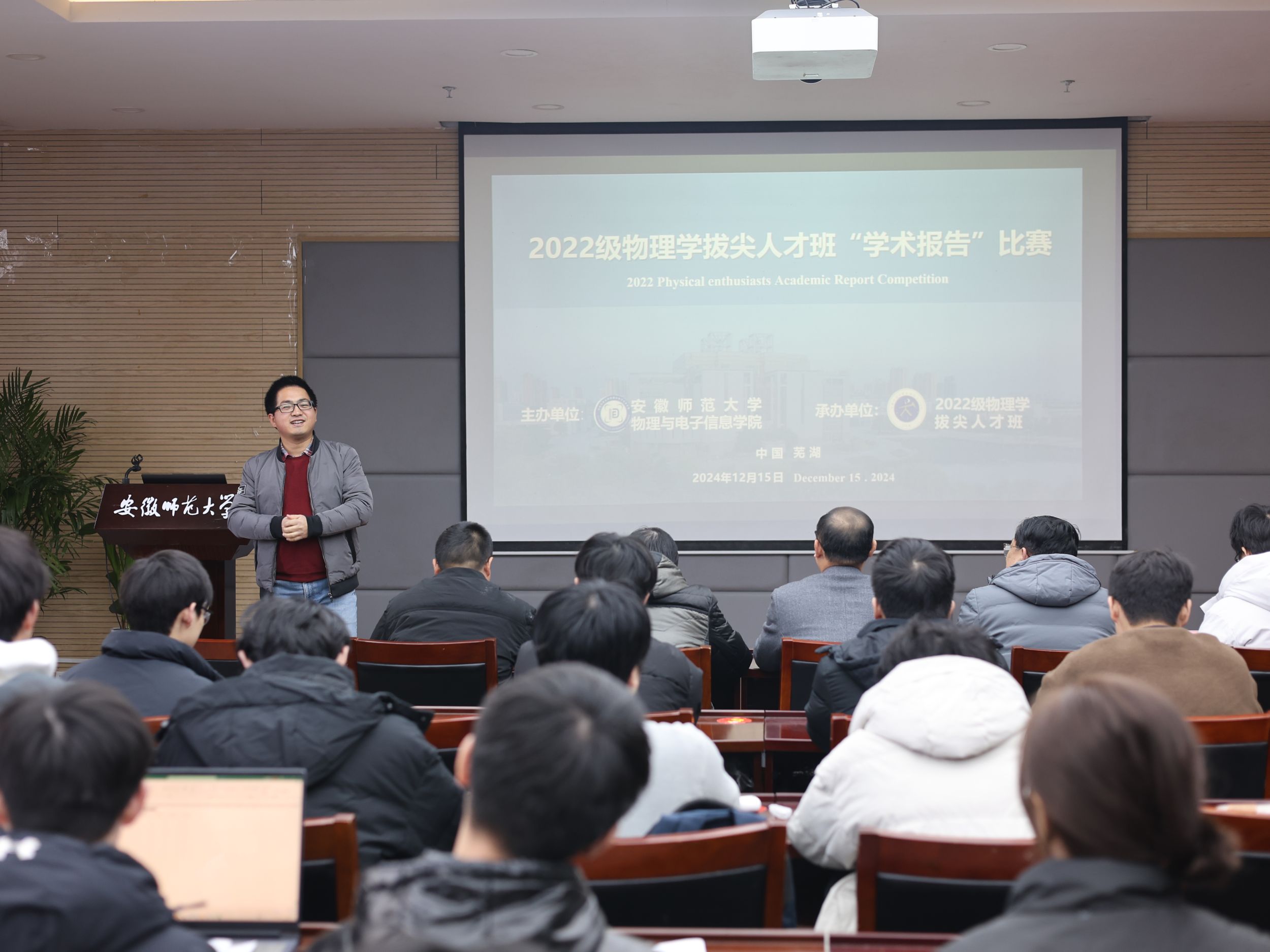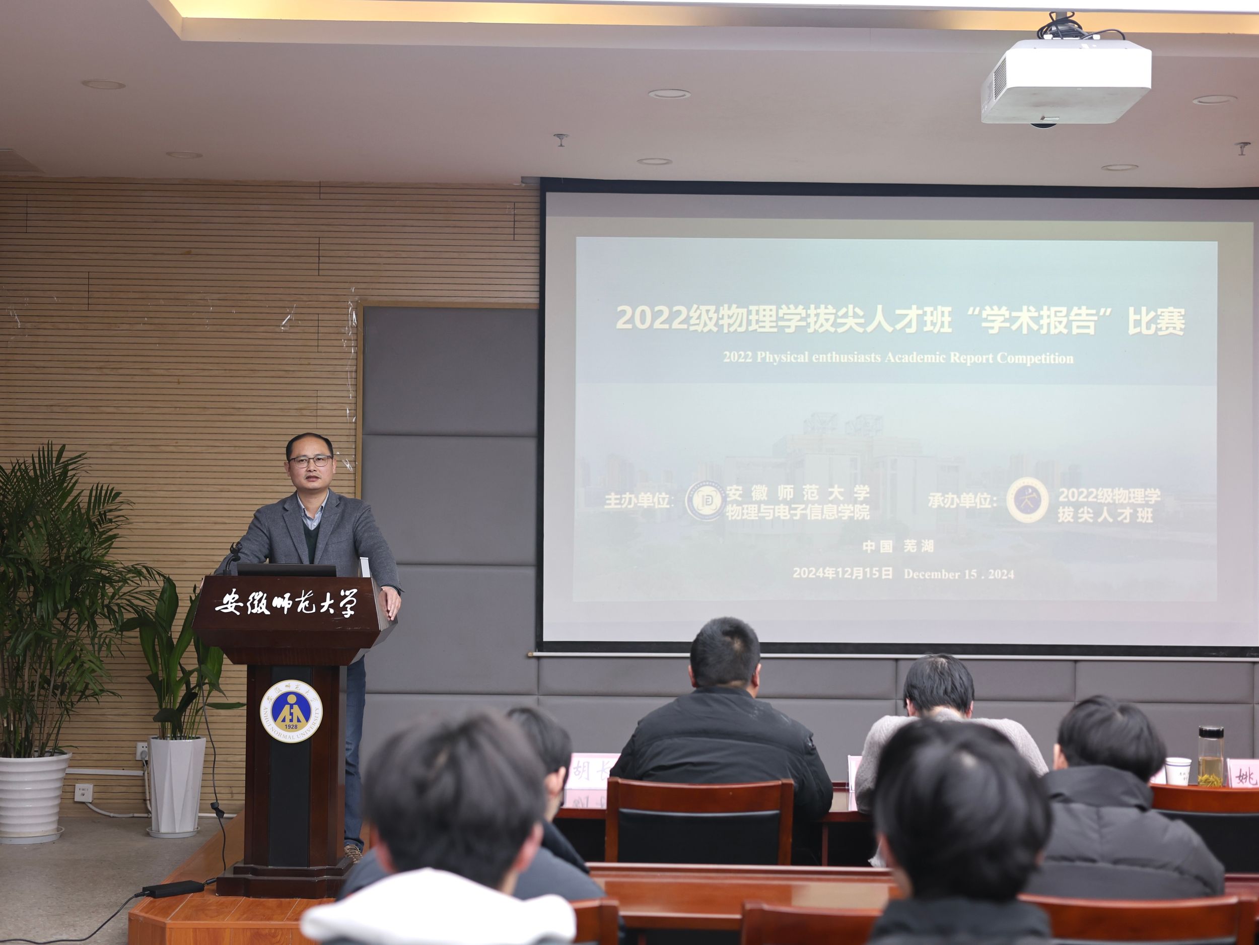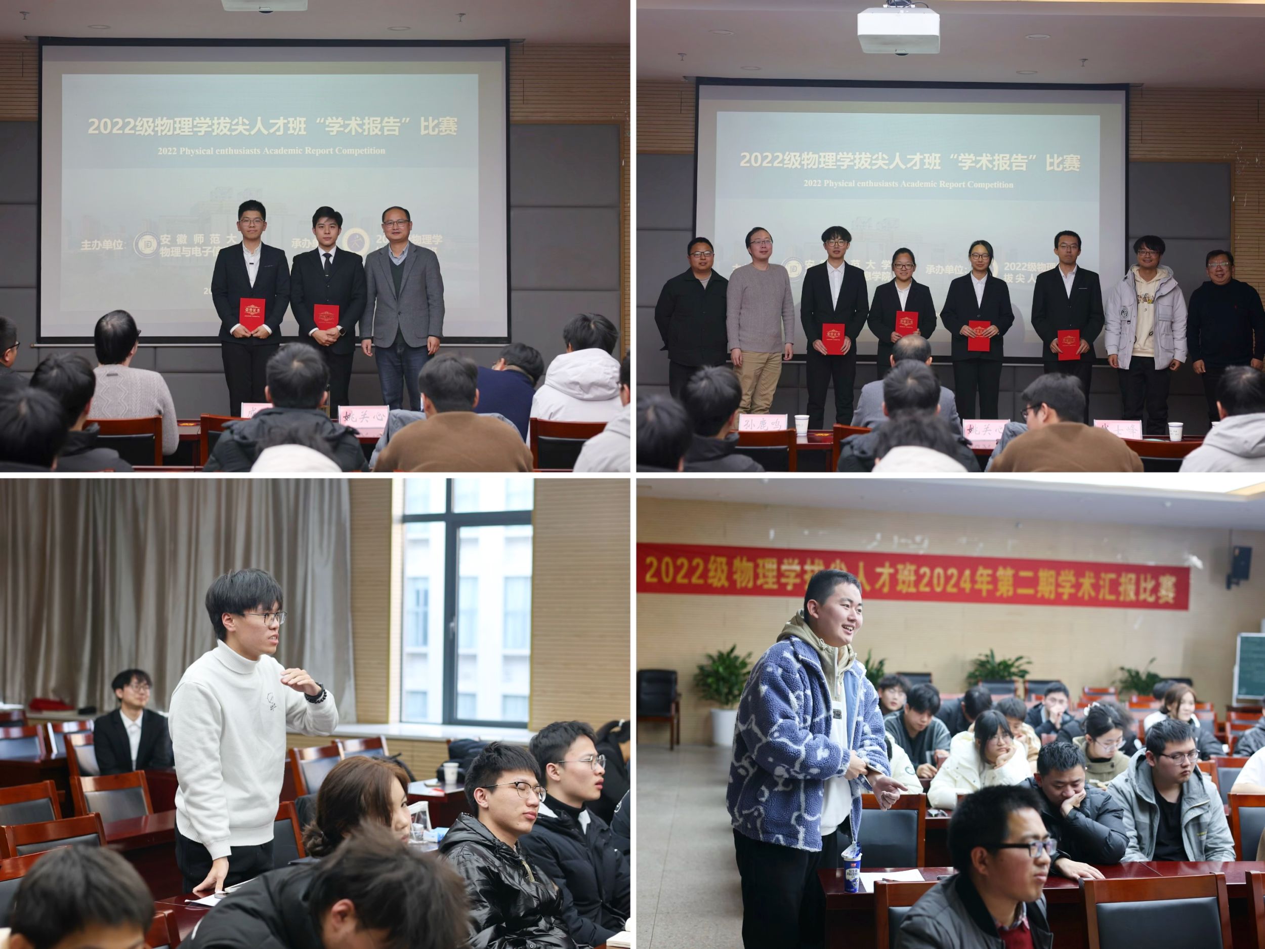 在物理楼304会议室举办了第六届物理学拔尖人才班“学术汇报”比赛,学院科研副院长盛晓伟、院物理学平台专业老师姚关心、孙鹿鸣、胡长生、钱士峰担任评委,2022级物理学拔尖人才班孙丹枫主持比赛,2022级物理学拔尖人才班全体同学观摩比赛。