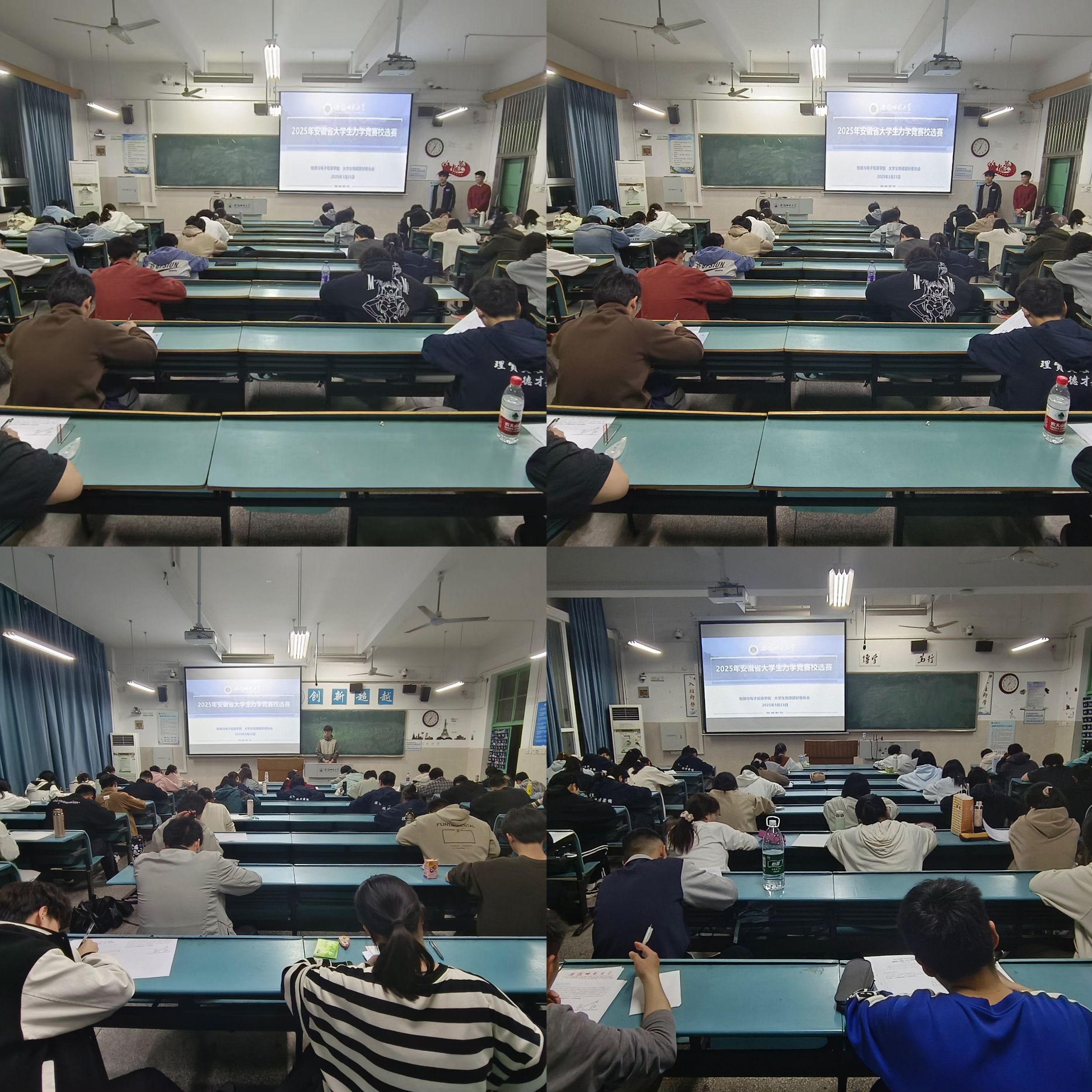 承办、大学生物理爱好者协会协办的2025年安徽省大学生力学竞赛校园选拔赛于3月23日晚在教学楼1号楼和3号楼举行。