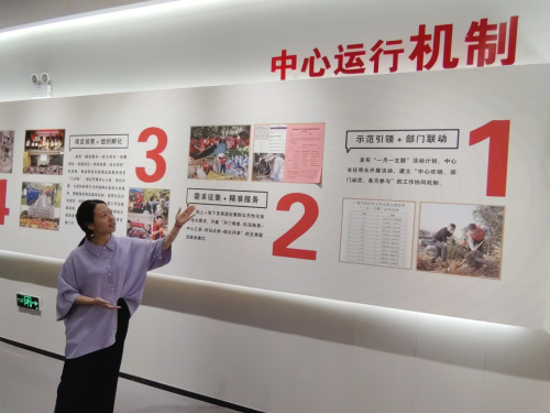 探访实践中心 感悟文明新风。在广德市新时代文明实践中心,志愿者巫珊向团队详细介绍了中心的建设理念和特色活动。巫珊指出:“中心整合了理论宣讲、教育服务、文化惠民等资源,是凝聚群众、服务群众的重要平台。”团队成员通过参观学习,深刻感受到广德市以实际行动助推社会公益活动发展。