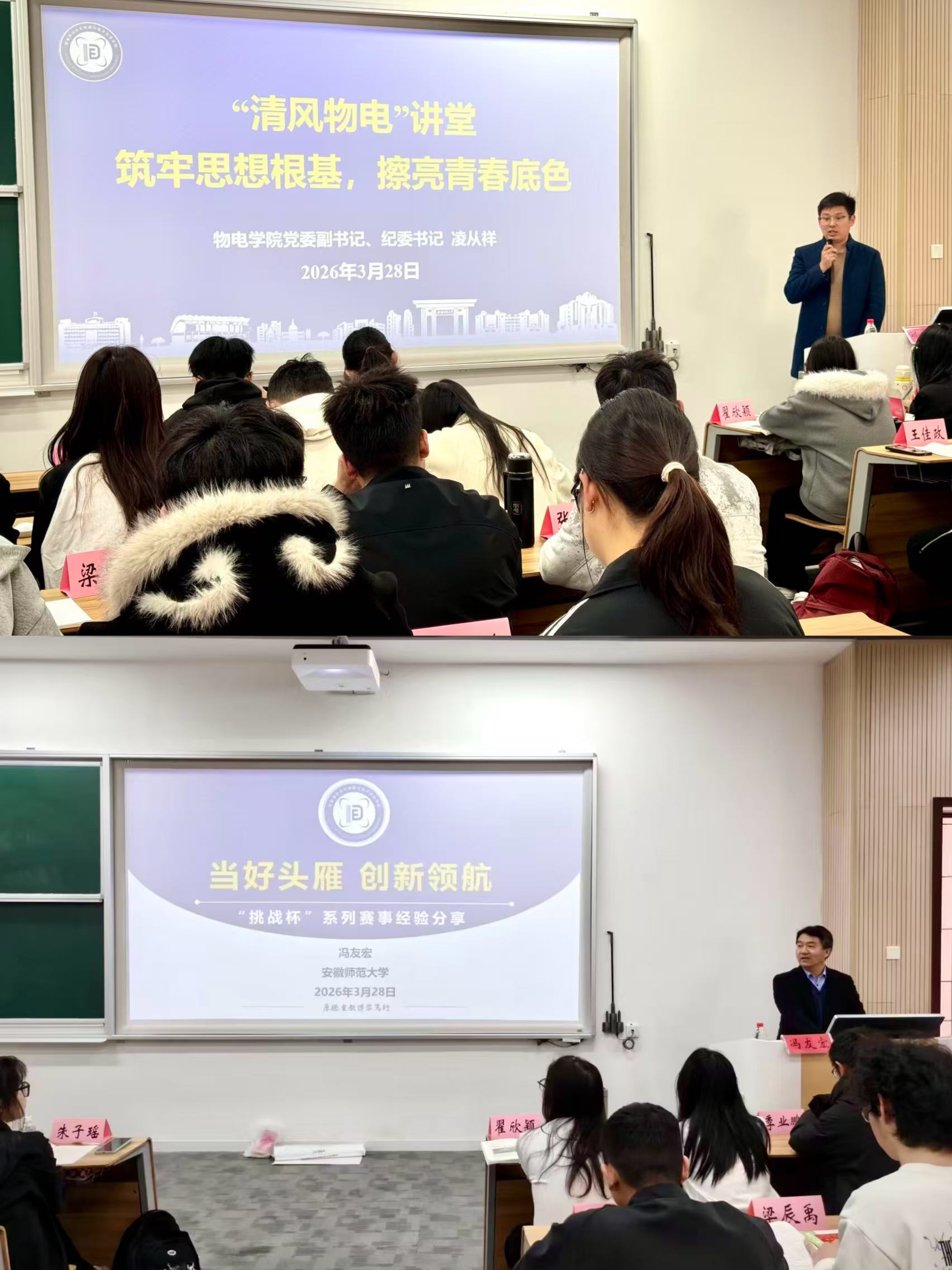 学院党委副书记、纪委书记凌从祥以《筑牢思想根基,擦亮青春底色》为题,从理想信念、价值取向等方面引导学员树立和践行正确政绩观,夯实思想根基、坚定成长方向。“挑战杯”特等奖项目指导老师,学院冯友宏教授以《当好头雁,创新领航》为题,结合自身竞赛指导经历,指导学生骨干发挥示范引领作用,积极投身科创竞赛、锤炼过硬本领。