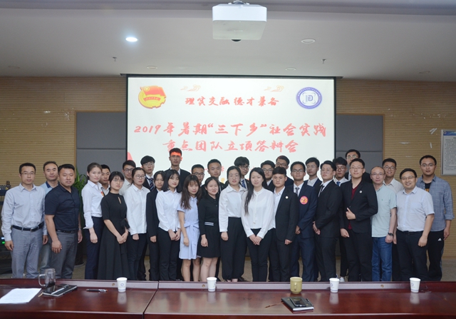 本网讯(院团委 沈翔)为进一步加强实践团队建设,不断增强实践活动的可行性、创新性与实效性,5月29日晚19:00,学院在理化大楼304报告厅召开2019年暑期“三下乡”社会实践重点团队立项答辩会。院党委副书记黄友生,专业教师蔺玉柱、汪志荣、周正仙、甘露担任评委。全体专兼职辅导员、院团委全体成员、答辩团队代表参加了答辩会,会议由学院团委书记宋凤楼主持。