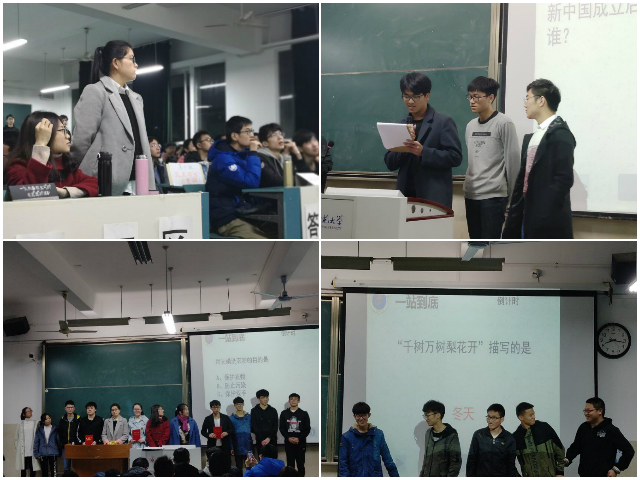 俞沁怡)勇者直面挑战,智者一站到底。为开拓同学们的视野,丰富班级文化生活,增强班级凝聚力,11月28日,2017级电子信息工程专业于行知楼2010104教室举办“一站到底”大型知识竞赛活动。据悉,本次活动题库涵盖党史、校规校纪、专业知识、常识等多方面内容,要求班级同学全员参与,由同学自主组队,每组四人参加比赛,采取答题淘汰制,最终决出前三名的队伍,并颁发奖品。 去留一念之间——个人淘汰赛