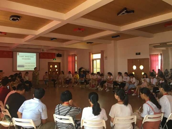 李老师还介绍了和晟教育理念——生命教育的精华“幼儿园生态发展系统”三个阶段——幼儿教学,教师成长和家长教育。而这次全体队员和老师们主要是参与关于教师成长部分的学习,教师成长初篇《职业滋养教师》。这部分学习主要目标是滋养教师,针对不同阶段的人进行不一样的培养目标:老成员,进行修整,提高认识和亲和力;新成员,进行精神和专业上的培养;实践队队员,让其对生命教育有所了解和感悟。