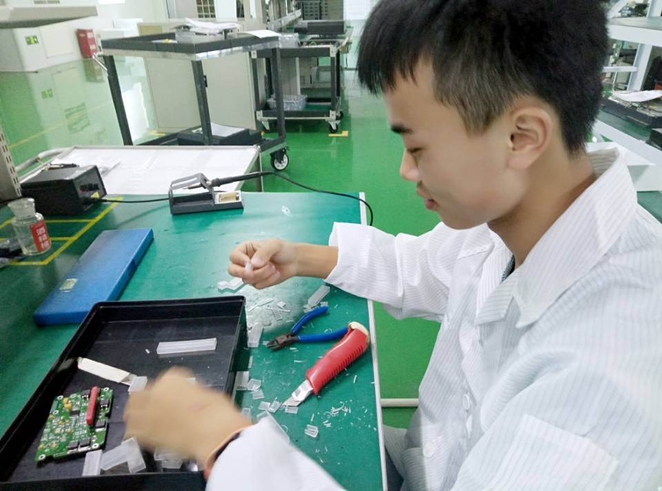 照片中的同学正在做一项看起来特别简单的工作——贴导线,就是将导线贴到纸上。我从他身边走过时,觉得这个工作没什么,就来尝试一下这个我看来特别简单的工作。我前面贴的还行,越到后面,越能发现这项工作的难度所在。一个是导线很难保证笔直;另一个就是纸会伸缩拉伸,从而使贴好的纸皱巴巴的,不能使用。我亲身贴了两块,就不敢继续贴了,因为再贴下去,师傅的导线就被我浪费光了,师傅的工作任务就完不成了。我有点心疼无能的自己,但同时我更加深切地明白了世界上根本就不存在真正意义上的简单,我们平时看到以为随随便便地简单,其实背后花了多少心血和汗水,我们都一无所知。