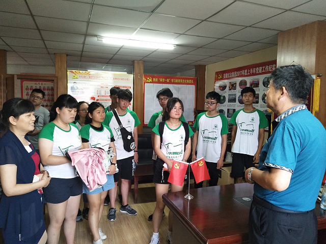 陈久铎指导员带领团队参观了党员活动中心、红达电器总经理办公室、人力资源部、党建工作室等办公地点,并且向团队展示了红达集团组织的志愿活动,他在介绍中说道,2016年7月六安市金安区双河镇遭遇洪灾,红达集团积极组织家电维修志愿者下乡活动,帮助双河镇的居民们免费维修家电,行走在抗洪前线,为居民送去便利。在参观过程中,陈久铎指导员向团队介绍了以杨萍为代表的部分企业优秀党员,杨萍出生农村,入职后仍积极入党,为集团输入正能量。他鼓励队员们求学上进,不断提高自身素养,坚持理想,不忘初心,牢记使命。