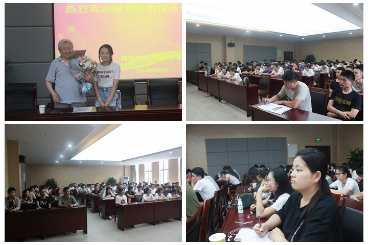 杨教授以党的十八届五中全会中五大发展理念点题:“创新、协调、绿色、开放、共享”,摆在首位的即是创新。杨教授指出创新精神与创新意识的培养是人才培养的核心要素,国家当前发展所迫切需要的是具有创新精神的复合型人才,对于如何培养大学生的创新精神与创新意识,杨教授对此提出五条针对性建议:一是要以兴趣为导向,夯实专业学习基础,第一课堂课是我们在校学习的根本要务,要养成良好的学习习惯;二是要学会读书,经典名著的阅读是我们当下大学生所缺乏的,少玩电子游戏,多读书、随读随记;三是要学会主动思考,“学而不思则罔、思而不学则殆”,主动思考可以将感性认识升华为理性认识,主动思考往往可以防患于未然;四是要理论联系实际,陶行知先生强调知行合一、以知求行、以行应知,要善于抓住细节,将理论联系社会实际与生活实际;五是要培养工匠精神,做一件事、专一件事,在实践中犯错、在犯错中成长,遇到挫折要勇于面对,贵在坚持是解决诸多难题的关键因素。在报告最后的互动环节,杨教授还耐心解答了现场同学提出的相关困惑并与同学进行了深入交谈。