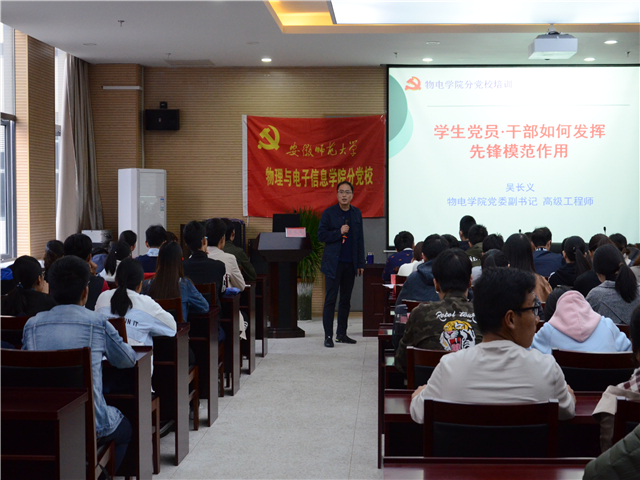 随后,吴书记还从“规划大学生活”、“发展自我”、“学生干部工作方法”三个方面具体阐述了学生党员、干部应如何在生活、学习、工作中发挥先锋模范作用。吴书记指出学生干部首先要明确自己应具备的素养和能力,认清“尊重”是学生工作的认知基础,自觉地、主动地、正确地定位自我,发展自我;其次党员、干部要保持思想上的先进性,树立高度责任感,态度要端正,目标要明确,工作要认真,机遇要把握,把先锋模范的作用发挥到位。
