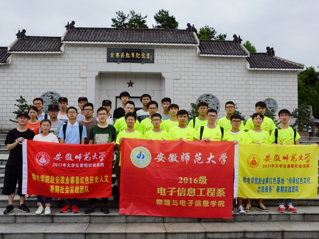 16电子)为学习红色文化,弘扬红色精神,服务社会,今年暑期,由2016级电子信息工程专业牵头组建两支的“赴金寨县博物馆志愿服务”团队在红色故里、将军之乡-六安市金寨县开展了为期十天的暑期社会实践活动。在各级领导老师的关心指导下,在全体成员的共同努力下,圆满地完成了实践任务,队员们有收获、有成长,在实地参观后感受到了和平的来之不易,在躬身实践中体会到了为人民服务的真谛。