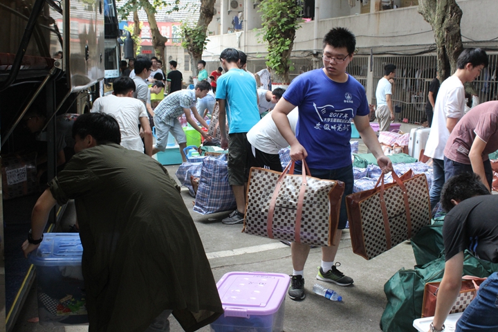 进行了15级寝室搬迁活动。有了之前的14级搬迁经验,我们的效率更高。搬迁队于早晨6:20就位,虽然早上下了一场雨,但并没有阻挡搬迁的进程,搬迁队协助同学将行李搬去挡雨的地方,最终于9:00完成了搬迁工作。