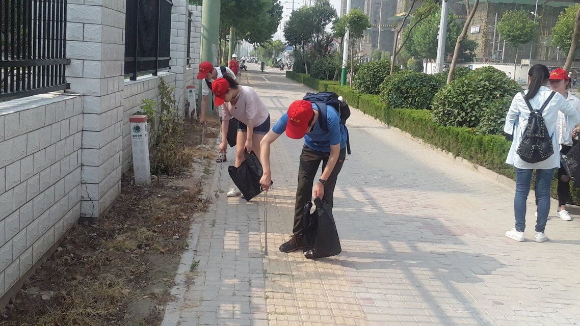 团队成员秉承了不怕苦不怕累的精神,开始了当日的活动。活动地点则集中于桓谭公园毗邻的公路上,而路上的垃圾则以烟头为主。无论是地缝,还是墙角花坛,只要有“不和谐”的因素,都会被挑拣出来。以此也表现了成员们的细心与耐心。