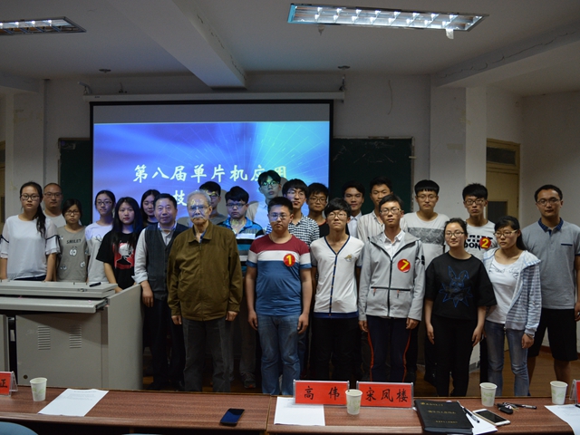 )2017年5月12日晚,由电子爱好者协会承办的第八届单片机应用技能竞赛圆满落幕。院关工委退休教师危启正教授、专业负责人高伟、协会指导老师宋凤楼担任了此次竞赛评委。