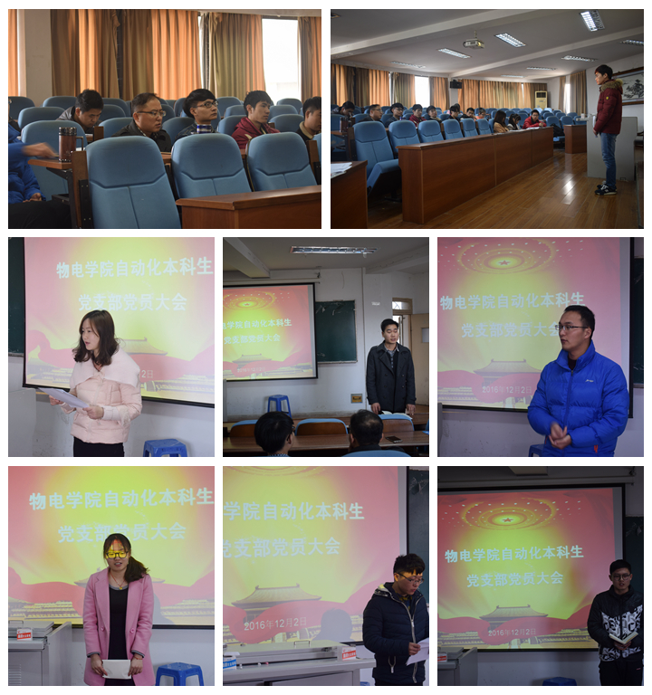 首先6名入党积极分子介绍个人情况,13自动化的盛雨婷介绍自己学习上认真刻苦,正在全力奋战考研;并承诺成为预备党员后,将起到先锋模范作用,以党员的要求严格要求自己。14自动化的陈聪介绍自己一直都积极向党组织靠拢,承担班级和学院有关工作也是认真负责,积极组织班集体活动。金毅、王晓冉不仅学习勤奋努力、刻苦钻研,还积极参加和专业相关的实践活动;15自动化的陈海峰、陶应健也表达了自己对党的认识以及入党的决心。吴长义认真听取他们的介绍,适时地提出问题,全方位地了解他们的思想动态,同时也引导他们不仅要做好自己的事,还要创建文明寝室、同时在自己的岗位上为班级、为学院做贡献。