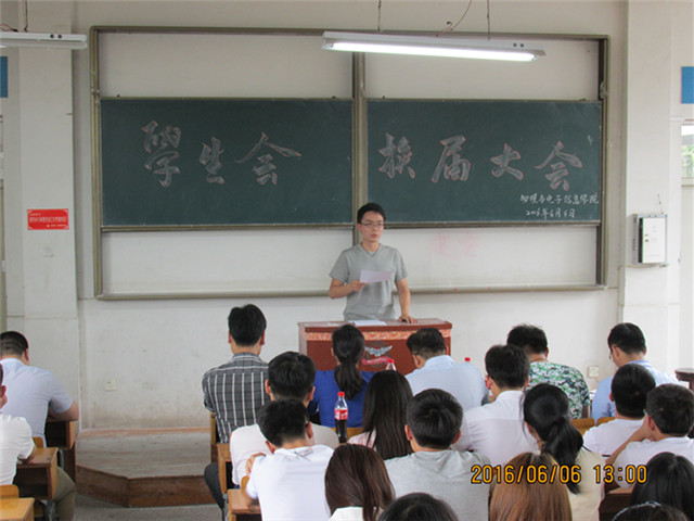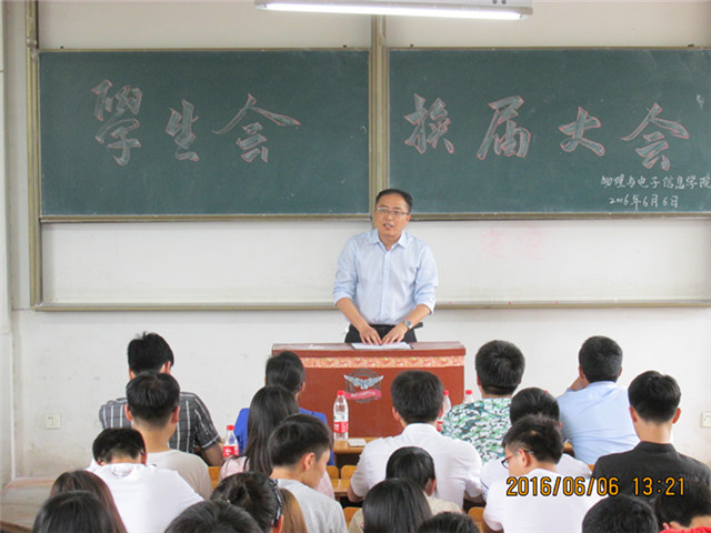 2015届学生会换届大会在物理楼3201教室隆重举行。院党委副书记吴长义,团委书记米佳佳,14级辅导员宋凤楼、汪光麒,15级辅导员徐玲、李亚及学生会全体成员参会。