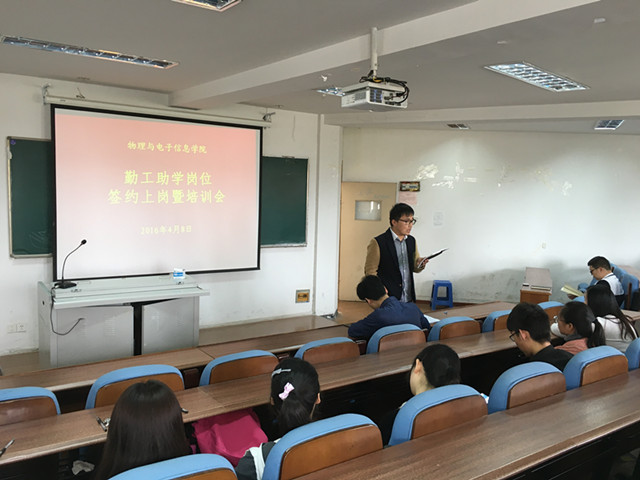 团委书记米佳佳、辅导员汪光麒、朱骞、李亚和十二名勤工助学岗位学生工作助理参加会议。会议由汪光麒主持。