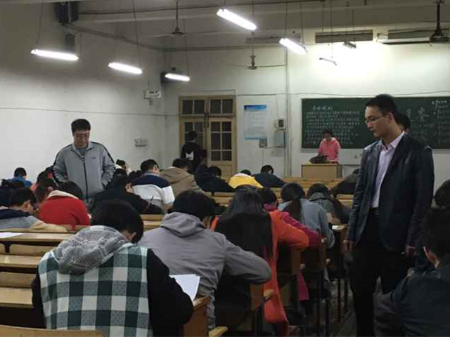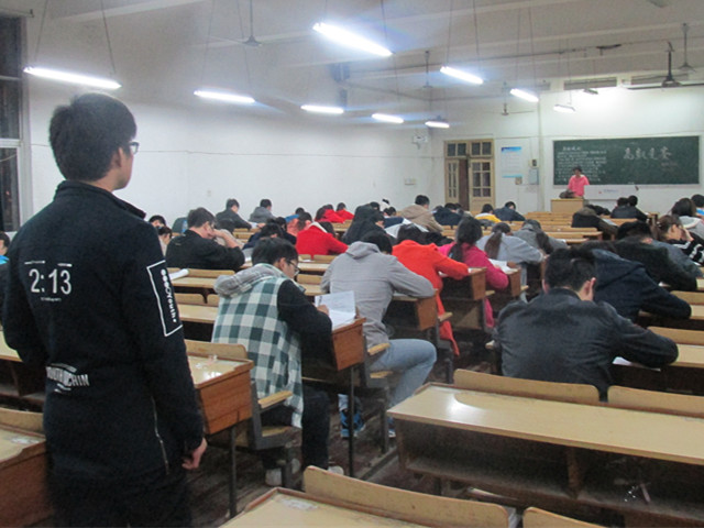 高数是一门重要的工具学科,是一切科学的基础。晚上七点,在教学楼四楼的五个教室,由监考同学宣读考试准则后竞赛正式开始。本次高数竞赛设置了一、二、三等奖和优秀奖若干。为严抓考风考纪,杜绝各种作弊现象,走廊上安排了巡考人员,米书记和辅导员宋老师也在考试期间亲临现场观摩指导。考试现场秩序井然,参赛选手全神贯注,认真思考。