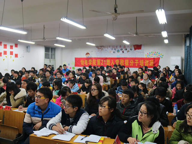 吴书记以党的理论为基础,以党的实践发展历程为脉络,由点到面详细论述了共产党的性质,阐明了共产党对中国特色社会主义社会发展的支柱作用和正确的领导性;在谈到党的宗旨时,吴书记鼓励在场入党积极分子要学习党“全心全意为人民服务”的精神,学会学习、学会做人、学会服务他人;随后,吴书记带领大家学习党的组织制度,他围绕民主集中制的六大原则,详细讲解了民主集中制的主要内容和科学内涵,强调民主集中制是我们党和国家的根本组织制度和领导制度;最后,吴书记图文并茂的介绍了党的各级主要组织机构,介绍了各机构的主要职责和工作内容,加深大家对党组织的了解。吴书记语言诙谐幽默且字字箴言,台下不时爆发出激烈的掌声。