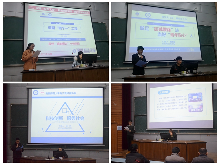 会上,宋凤楼梳理了学院团学工作在2019年中取得的成绩。学院团委、学生会、电子协会、发明协会4个组织的学生负责人依次上台,总结年度工作、梳理问题不足、介绍来年计划。与会老师为年度团委优秀委员,学生会优秀部员,协会优秀理事、会员颁发了荣誉证书。