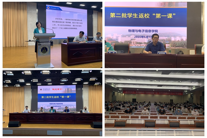 上好返校“第一课”。为进一步做好学生返校后管理工作,6月1日晚,学院在理科大楼报告厅分批次开展第二批次学生返校线下“开学第一课”,学院领导班子成员、相关辅导员、第二批返校学生参会,会议由党委副书记黄友生主持。李娟老师首先为“返校第一课”开讲,她帮助同学们全面分析当前国内外疫情防控形势,从国家、省、学校三个层面详细解读了疫情防控政策,她希望同学们能够全面熟悉疫情防控知识,严格遵守疫情防控规范,提高自身疫情防控思想认识,切实做好个人防护工作,返校后服从管理、安心学习。许新胜布置本科生实验考试等有关工作,并给返校学生提出了各项具体要求。宁利新从学习和生活两个方面对首批返校研究生做出提醒和要求。院长郑贤锋在最后总结讲话中对安全返校的第二批学生表示欢迎,他要求同学们要做好常态化防疫的准备,做好自身防护,保持良好心态,安心学习备考,期待同学们在期末考试和来年考研中取得好成绩。