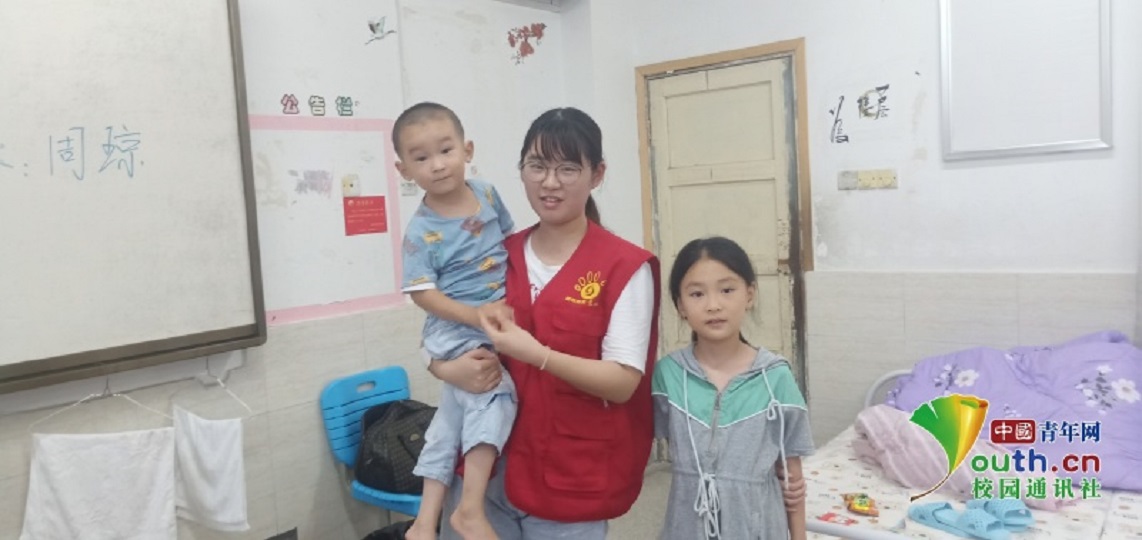 的徐姚同学,从7月20日起参加合肥市后勤志愿服务工作。徐姚同学先是加入到合肥市蜀山区防汛防涝的志愿队伍,冒着大雨巡逻社区、搬运沙袋。当得知合肥市肥西区有多个灾区安置点急缺志愿者,受灾孩子急需有人照顾时,徐姚主动报名,转战受灾群众安置工作。变的是服务地点,不变的是志愿服务的初心。徐姚先后服务在上派中学、肥西三中两个安置点,每天完成日常巡逻、搬运物品、分发餐食等工作。工作之余,徐姚积极发挥大学生专长,主动辅导孩子功课,跟孩子们互动交流,解决家长的“燃眉之急”,缓解受灾孩子焦虑不安情绪,成为孩子们眼中的“知心姐姐”。