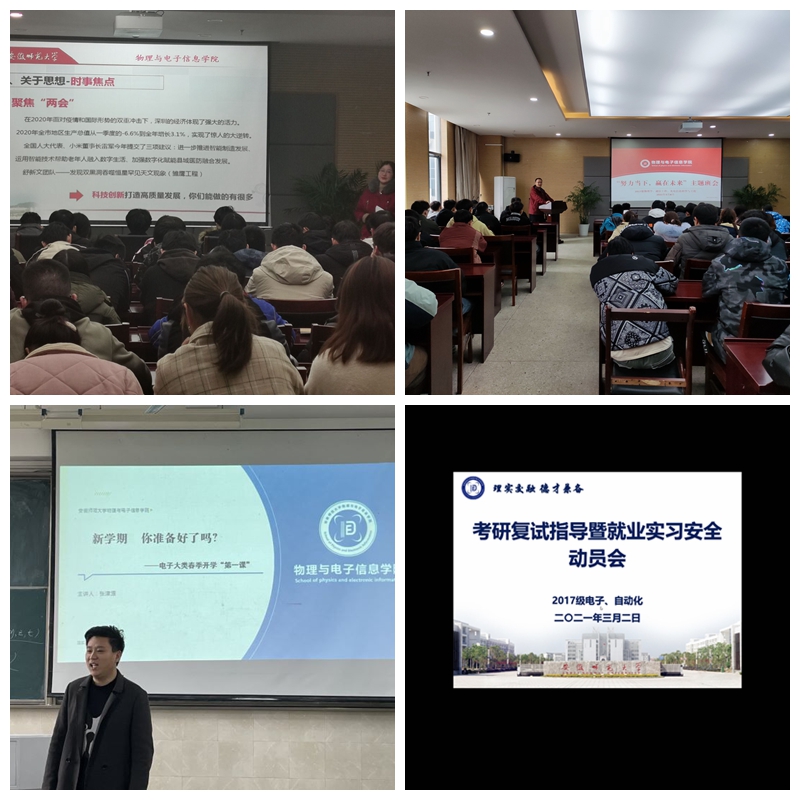 各年级辅导员组织召开新学期“开学第一课”主题班会,从党史教育、思想引领、劳动教育、疫情防控、学业规划、安全教育、就业择业等方面帮助同学们规划新学期的学习生活。