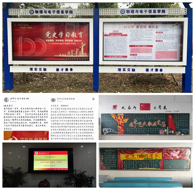 自党史学习教育启动以来,学院各党团支部积极谋划,学会利用新媒体新技术,增强学习党史教育的针对性,通过学院微信公众号、各班级官Q官微定期推出党史学习教育系列推送,让学习之风常驻周围。同时通过学院电子屏幕、宣传橱窗、班级黑板报等形式,广泛宣传党史知识和习近平总书记关于学习党史的重要论述,把党史学习融入日常生活中,真正实现通过多渠道、多方面让党史学习教育“活”起来。