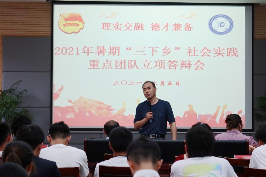 于6月5日下午3点在物理楼304召开2021年暑期社会实践团队立项答辩会。金工实训中心主任、社团指导教师蔺玉柱,电子专业教师、学院团委副书记甘露及学院全体专兼职辅导员出席答辩会并担任评委。各实践团队负责人参与本次答辩。