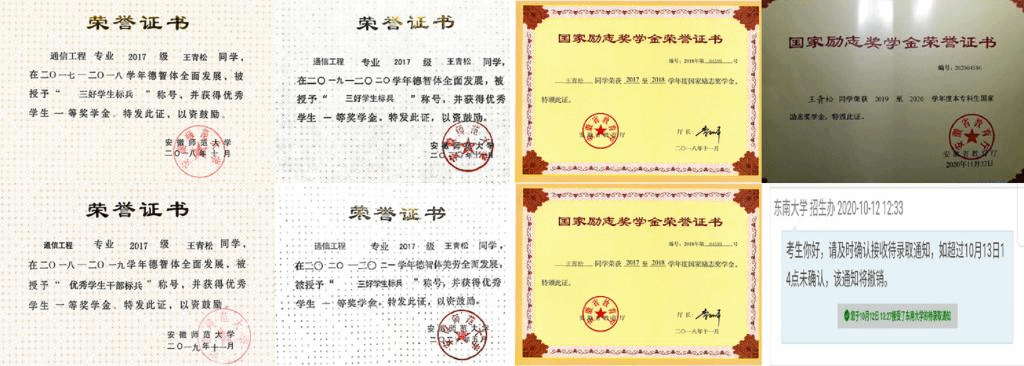 她坚信只有实际行动,才可成就梦想。四年以来,她始终铭记“厚德,重教,博学,笃行”的校训,认真学习专业知识,通过不懈努力,大学成绩名列前茅,顺利通过英语四六级,四年综测成绩全系第一,连续三年获得国家励志奖学金,连续四年获得校优秀学生一等奖学金,“三好学生标兵“荣誉称号,获得朱敬文奖学金和沐坤创新奖学金。最终因成绩优异成功拿到推免资格被保送至东南大学攻读研究生。