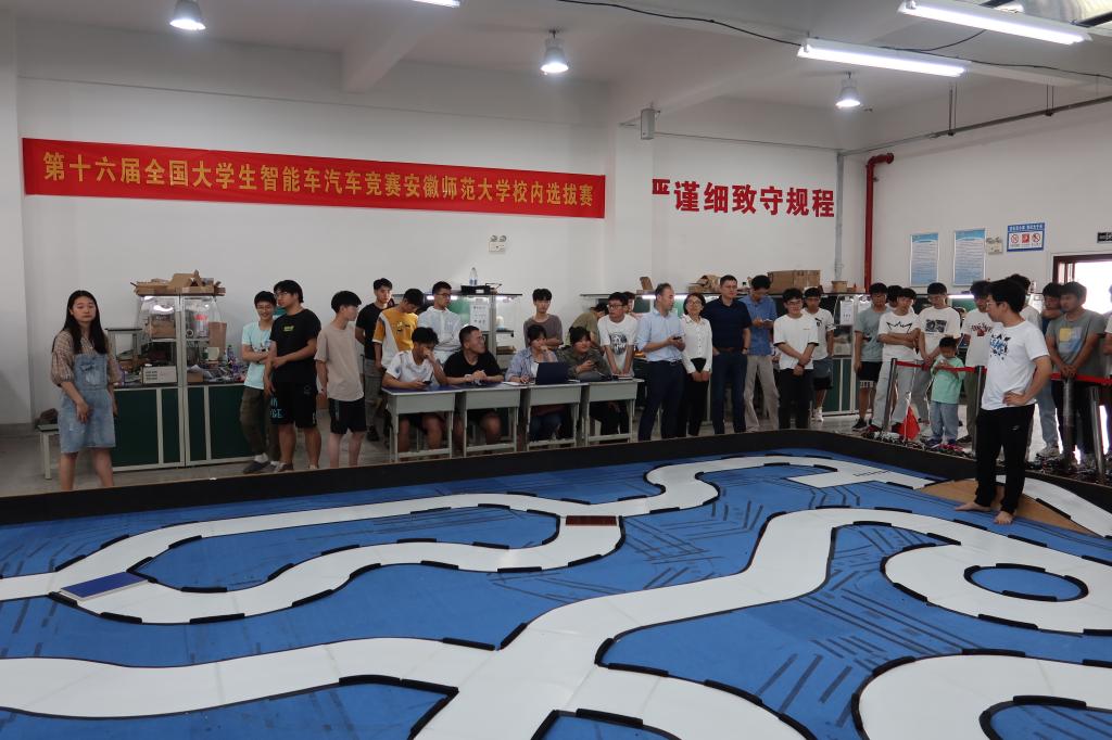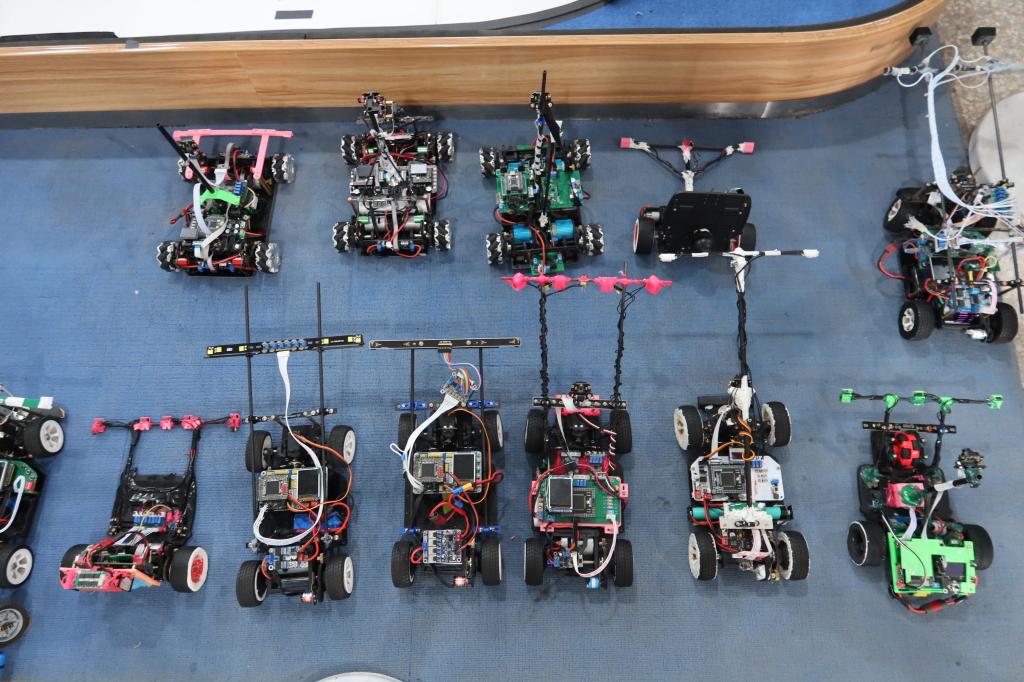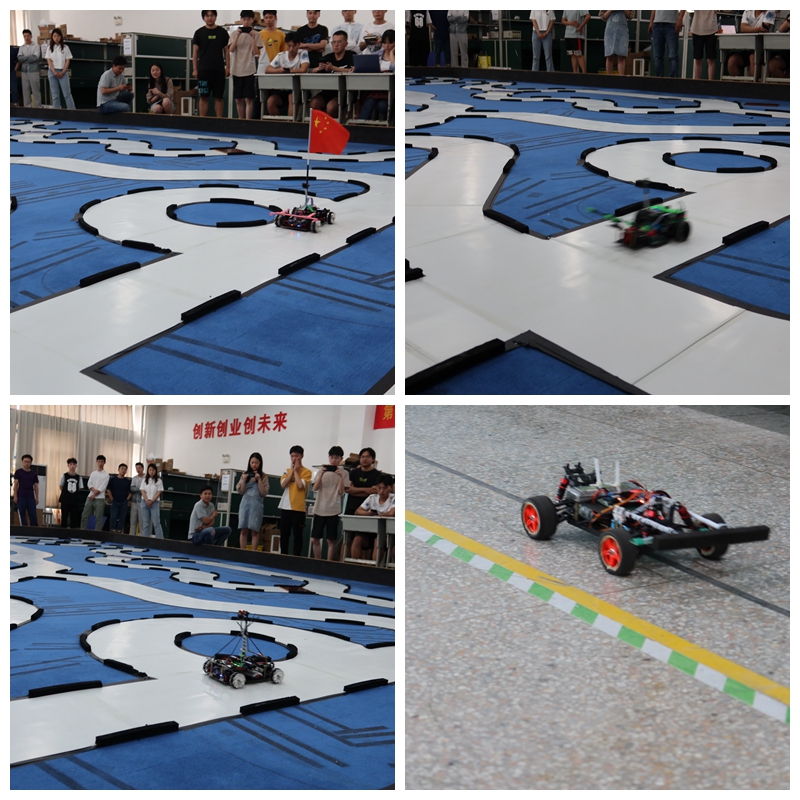 比赛开始,智能车起始点就位,举手示意,启航出发,飞驰在赛道上的智能车,描绘出了他们的梦想,展现了物电学子的孜孜不倦,勇于探索的科学精神,彰显了大学生勇于创新,努力奋斗的新时代风采。在比赛中,蔺玉柱细致地进行讲解,参赛人员耐心等待,认真观赛,各组智能车蓄势待发,展现出自己最完美的一面。比赛最后,由到场嘉宾和教师为获奖队伍颁奖,同时进行了优秀智能车演出展示和机器狗展示。