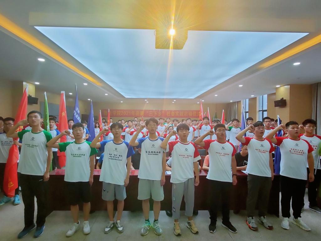 郑贤锋作动员讲话。他指出,开展大学生社会实践是高校全面贯彻党的教育方针、切实加强思想政治教育的重要举措,也是我校人才培养方案既定的重要内容。勉励全体同学要坚定理想信念,做矢志奋斗的新青年;珍惜韶华时光,做求真好学的新青年;发扬吃苦精神,做乐于奉献的新青年;强化安全意识,做遵纪守法的新青年。授旗仪式环节,汪凯、郑贤锋为8支校级重点团队授旗,高艳杰、张爱清为17支院级重点团队授旗。在2021社会实践代表宣灵捷带领下,所有与会同学光荣宣誓,出征仪式在团歌中结束。