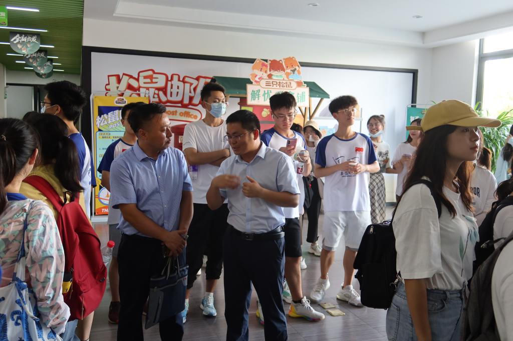 在三只松鼠股份有限公司,法务总监“鼠阿九”和工作人员向大家详细介绍了三只松鼠公司从一家小企业到现如今一跃成为互联网休闲食品领军者的发展历程。三只松鼠公司不断拓展自身发展渠道,探索发展新模式,让学员感受到了创新创业的无穷魅力。在座谈会上,学员同三只松鼠“鼠伯乐”等人员开展了深度交流,对三只松鼠书创新模式、创新方法有了进一步的认识。最后,黄友生向三只松鼠公司工作人员的热情接待表示感谢。他提出,三只松鼠公司成功的重要原因之一是其创新意识和创新能力,大家要感受、分析、理解其所特有的创新精神;他指出,“双创”训练营不是为了让学员们短期速成,其主要目的是培养学员们的创新意识和创新理念,提升学生的综合素质。