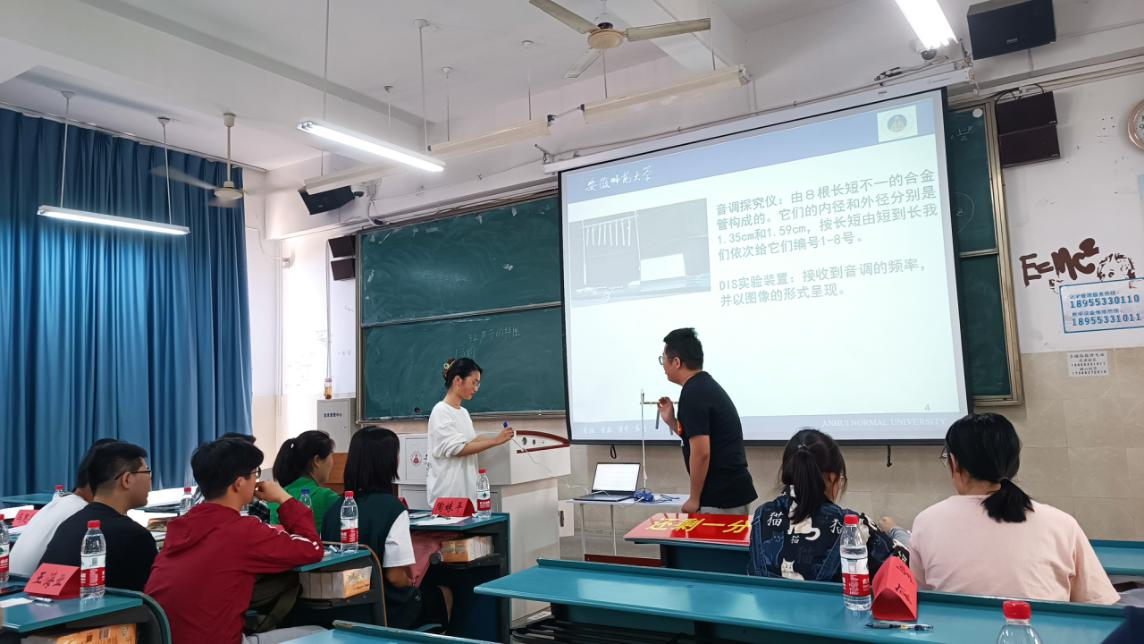 本次参赛的16位选手分别进行8分钟模拟授课,为体现真实教学环境中选手的专业技能,邀请了15位物理师范专业的本科同学聆听与互动。有的选手根据教育知识的积累和对教学内容的深刻研究,设计出生动严谨的教学互动;有的选手利用学院提供的丰富的教学资源和技术支持,设计出极具创意的教学小实验。选手们教学技能扎实,教学过程各具风格,与学生的积极互动让现场氛围时刻活跃。评委老师结合教案、课堂教学内容、教学方法、课堂板书、教学语言与教态等综合表现进行打分,并为每位选手的模拟授课过程进行针对性评价,从教学活动的逻辑思维、选手授课的精神风貌,到细节的板书和肢体语言,体现了评委老师严格认真的指导精神,选手们受益匪浅。