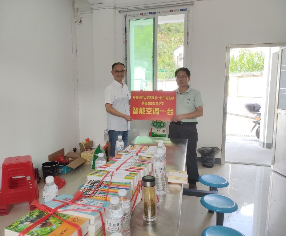 物理学—教工党支部向昆仑小学捐赠了一台智能空调,让全体师生在更舒适的环境中学习成长、教书育人。学院还向昆仑小学捐赠了一批图书,给更多儿童提供多读书、读好书的机会。之后双方领导还就校园教育教学管理、支教文化建设等话题展开了广泛的交流。