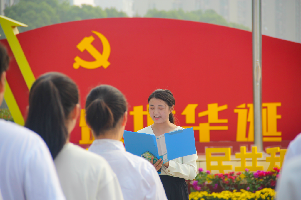 于10月1日上午,在敬文图书馆东广场与校园绿色草坪举行迎国庆主题团日活动。学院团委指导老师刘冠琪,学院学生会指导老师李慧芳,学院团委、学生会及三大社团团员代表参加本次活动。团日活动由李慧芳主持。
