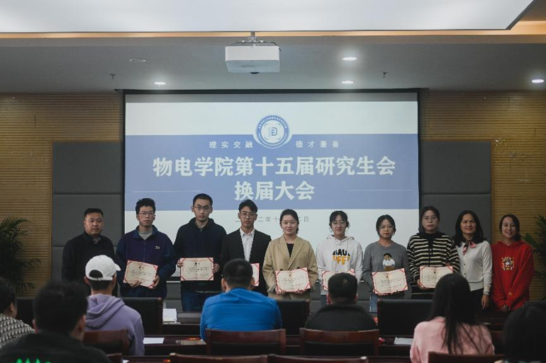 研究生会换届大会在物电楼304会议室举行。学院党委副书记黄友生、学院团委书记刘冠琪、学院研究生秘书王亚青以及包子漫画
