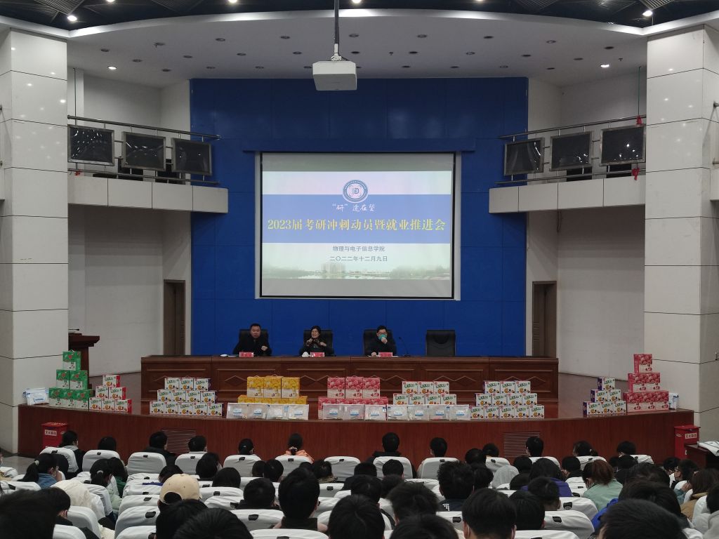 在敬文图书馆报告厅举行2023届毕业生考研冲刺动员暨就业推进会。院党委书记李娟、院长郑贤锋、毕业班辅导员以及全体2023届本科毕业生参加会议,会议由院党委副书记黄友生主持。