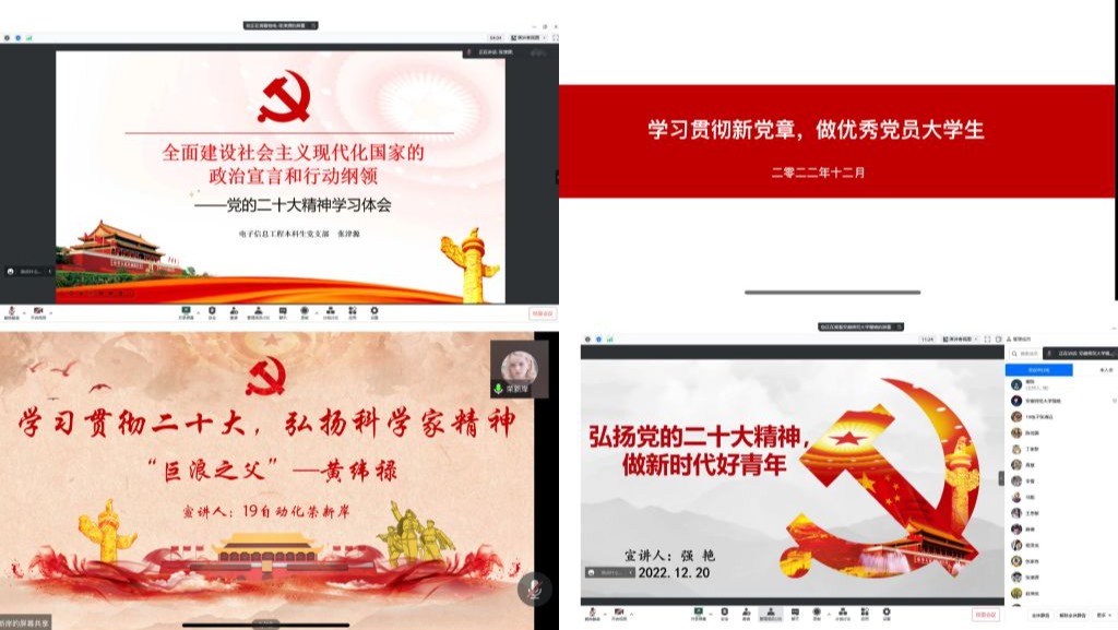 为深入学习宣传贯彻党的二十大精神,全面准确把握二十大新党章的精髓要义,12月以来,包子漫画 各党支部按照学院党委要求,组织开展了“深入学习宣传贯彻党的二十大精神”主题党日活,教育引导广大党员深学细悟党的二十大精神,对标对表学习践行新党章,持续推动学习宣传贯彻党的二十大精神走深走实。