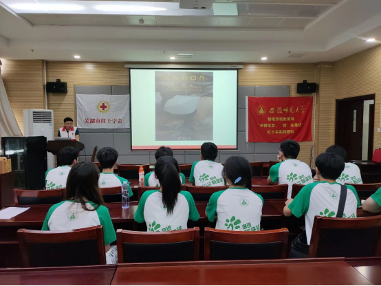 快字争先、严字当头是落实青少年健康教育工作的主基调。数据显示,我国应急救护技能普及率仅为2%左右。急救知识匮乏是困扰健康中国行动实施的主要障碍。从学校入手开展急救知识普及,既是坚持健康第一教育理念的题中应有之义,更是在为社会培养乐于施救、敢于施救、善于施救的人才。为加强青少年儿童的急救知识储备,有能力应对并解决意外突发事件,暑期社会实践的第一站,团队就来到了芜湖市第二中学进行宣讲。宣讲员王经铭围绕急救基本知识、救护新概念进行讲解,当遇到溺水、火灾、地震、触电等意外事故时应该如何进行自救和他救。日常生活中,意外事故很难避免也很难预料,如果我们不及时医治或操作不当,很可能会对自身或他人造成二次伤害。学生是国家的未来,民族的希望。他们愿意探索新鲜的事物,并有着很强的接受能力。将急救知识引入校园,不仅能让广大中小学生真正掌握到最基本的急救知识,更有助于学生能够活学活用,在现实生活中发挥作用。