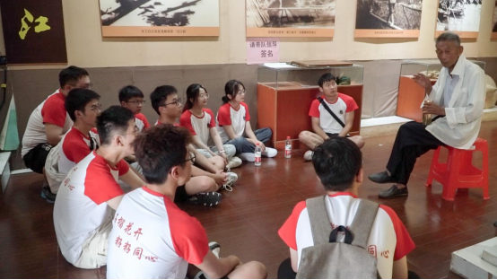 17日上午, 实践队伍邀请到董玉发老爷爷进行了专访。董玉发老爷爷向队伍成员们讲解了渡江战役的详细过程,其中的革命精神使得成员们备受触动。并讲解到战争结束后回民村的建设过程,这位花白了头发的老人带头开荒阔土,围湖造田,让村民们有田可种,有粮可食。参访最后,董玉发老爷爷讲道:“有许多记者来采访过我,有许多领导都来看望我,说明党没有忘记我。你们一定要牢记,一定要为人民服务。”这是对队伍成员的期盼,更是对广大青年学子的殷殷嘱托。